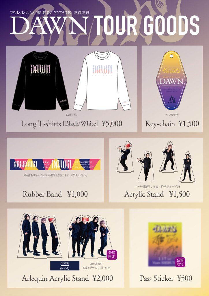 アルルカン 東名阪 TOUR「DAWN」 NEW GOODS発売&先行物販のお知らせ
